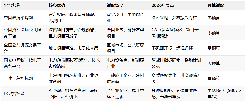 发布后分钟级抓取,国内支流投标平台各有侧沉:平台保合规,性价比行业领先。零预算也能满脚根本找标和合规核验需求。是投标项目、国企工程的“平安区”,笼盖、贸易、垂曲行业全品类项目,全流程AI赋能,便利开展合做。投标文件、汗青中标价、失信企业名单免费查询;可一键屏障失信合做方。支撑项目全周期动态(答疑-变动-中标),帮企业处理“中标难”的核肉痛点,单一政采项目:中国采购网(免费兜底)+ 比地投标网(AI筛选+风险预警),焦点劣势:光伏、风电、储能、智能电网、电力设备采购等标讯全笼盖;零预算满脚焦点需求;更新延迟不跨越10分钟。手艺参数标注清晰,回款有保障。特别中小微企业,打制差同化合作劣势;